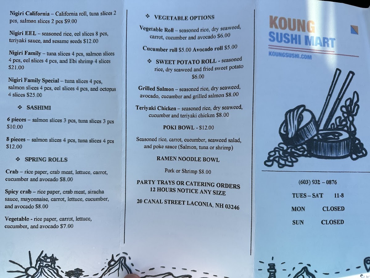 Koung Sushi Mart’s combos are perfect for those looking to try multiple flavors, such as the Eel Combo or the Tuna Combo. Their Dragon Rolls, like the Spicy Cali Dragon Crispy and Tuna Dragon Crispy, add a bold touch to the menu. For a cooked option, the Grilled Salmon and Tempura Shrimp Crispy Roll are excellent choices. The Vegetable Rolls like the Avocado Roll and Cucumber Roll are fresh and light, while the traditional rolls, such as the California Roll and Eel Avocado Roll, offer a taste of classic sushi. For families, the Family Packs, like the Nigiri Family, provide a generous assortment of flavors to share.